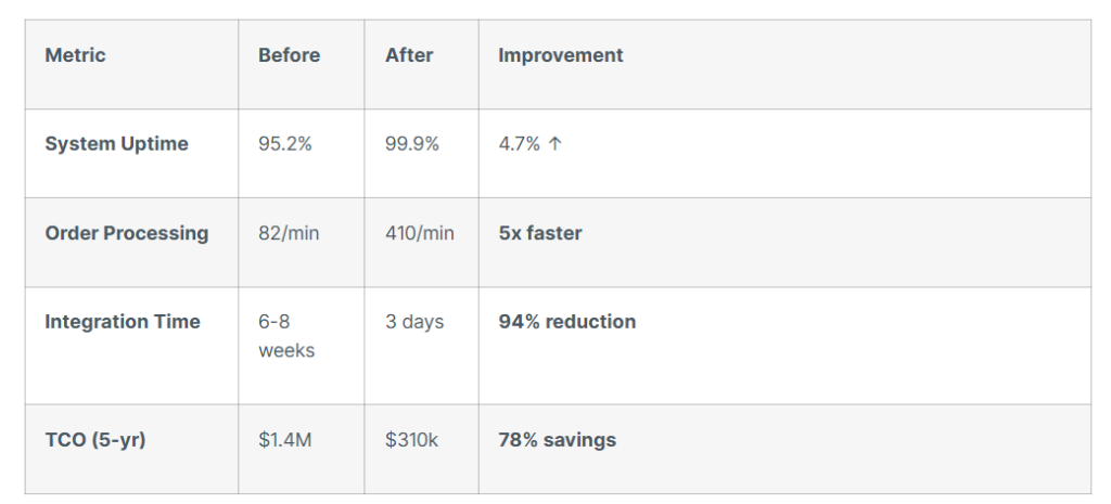 Challenge: Proprietary ERP system stifled growth with rigid architecture, spiralling licensing costs, and integration roadblocks.